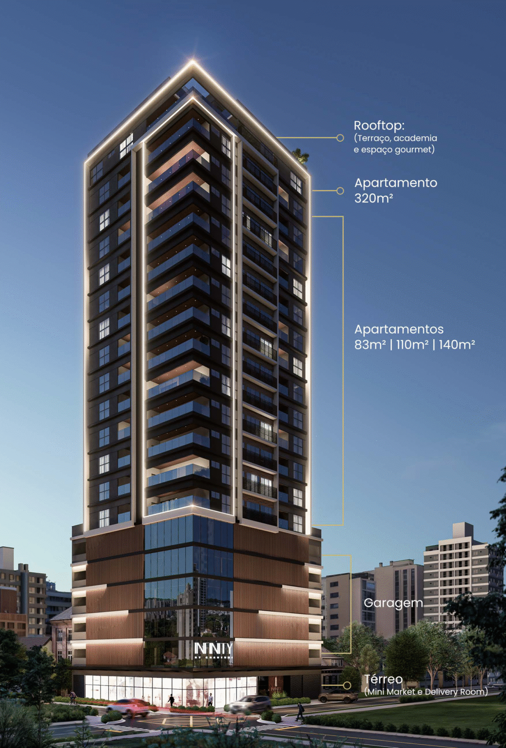 O Infinity está situado na Rua Quatorze de Dezembro – nº 156, um endereço estratégico e valorizado próximo a todo centro de Três Rios e a Avenida Alberto Lavinas.